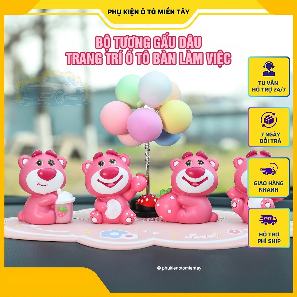 Xem chi tiếtBộ Tượng Gấu Dâu Hoạt Hình Dễ Thương Trang Trí Ô tô Bàn Làm Việc